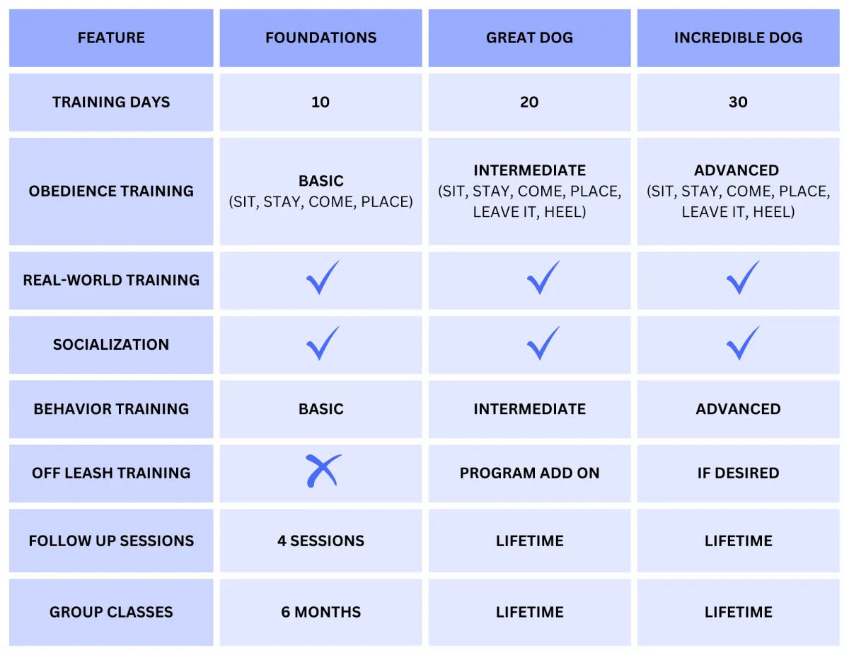 Day camp is a great option for those that are retired, working from home, or passing our location daily and want professional training with the flexibility of dropping off and picking up around your schedule.